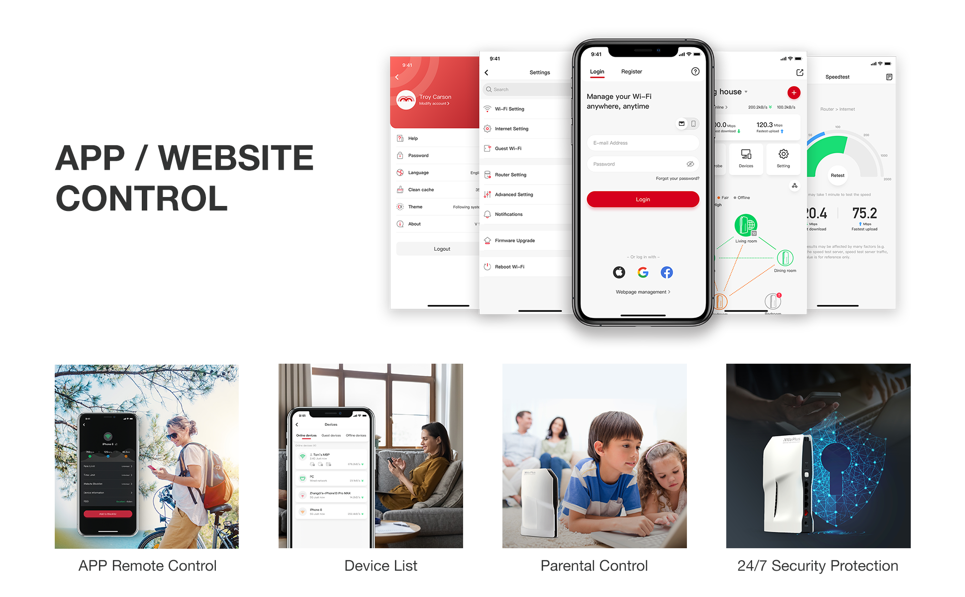 Mercku's App gives you network control right at your fingertips, even when away from home, allowing setting parental controls, performing speed tests and denying access to your network from unknown devices.